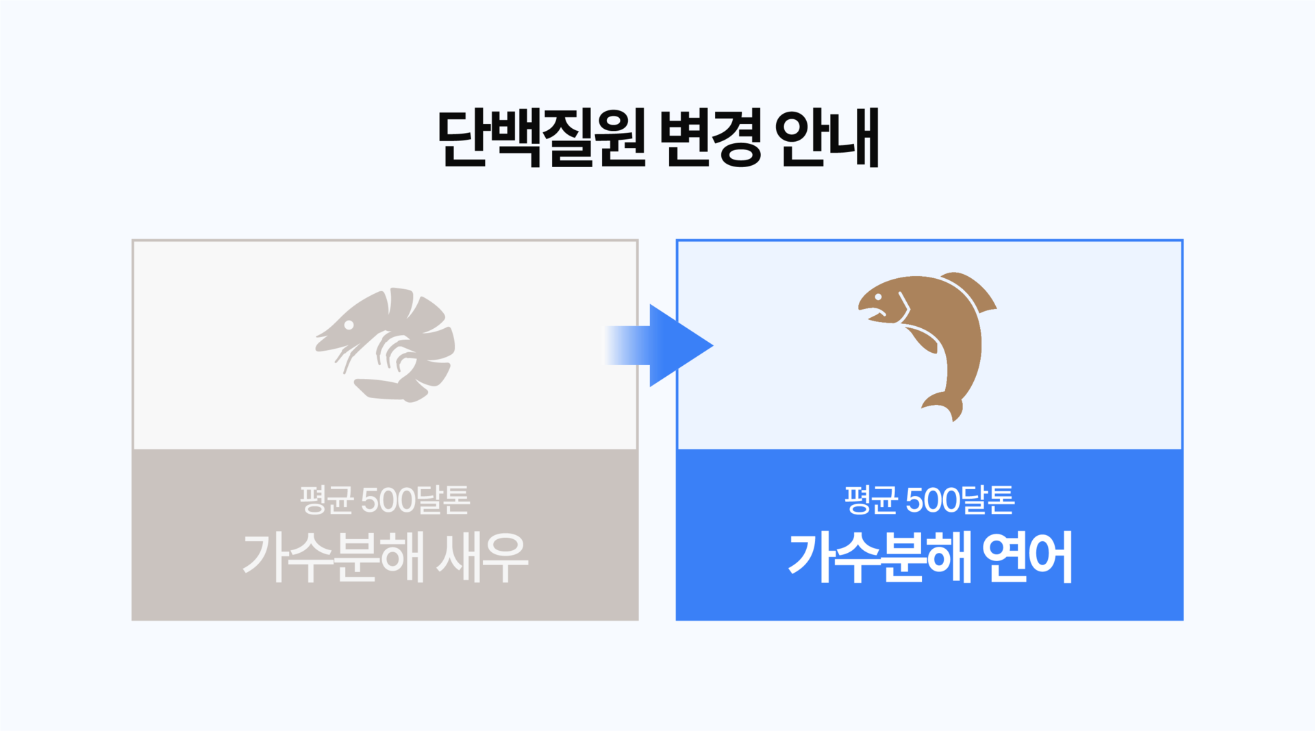 - 과량 급여 시, 소화장애나 설사의 원인이 될 수 있으므로 일일 권장량을 맞춰 급여하십시오.