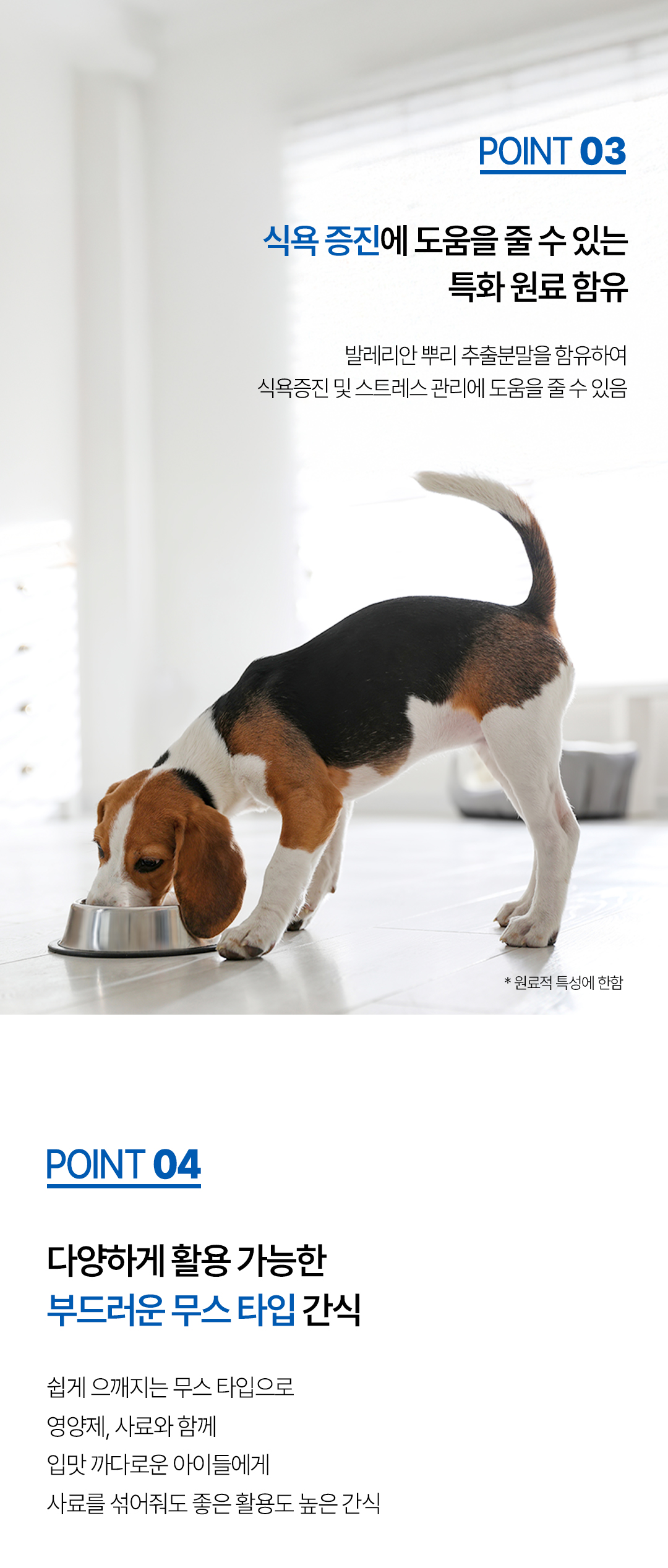- 반려동물의 신체 특성에는 개체 차이가 있어 모든 반려동물에게 동일한 효과가 적용되지 않을 수 있습니다.