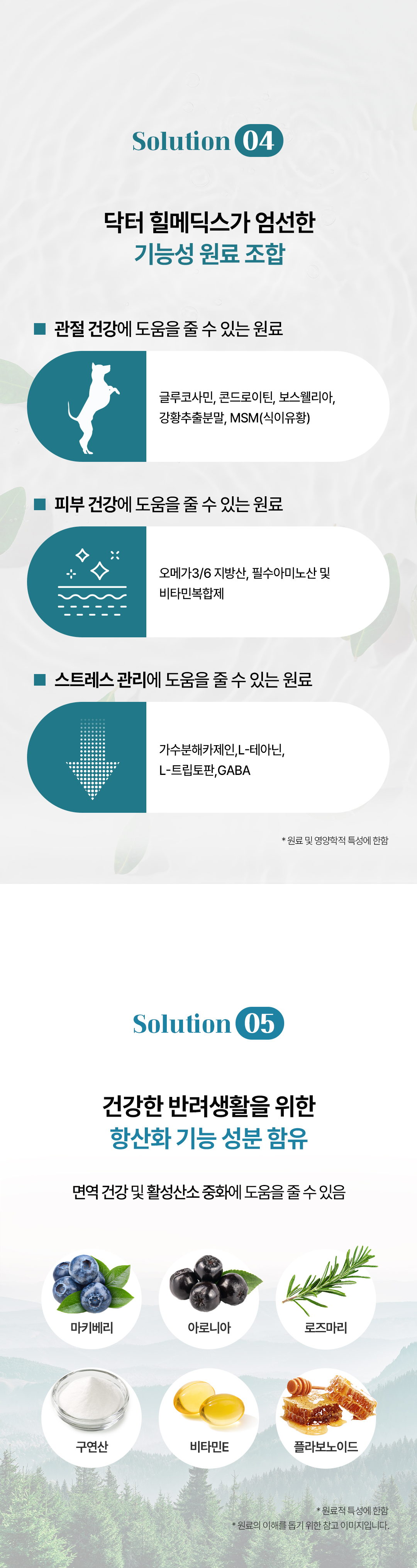 식염,CLA(공액리놀레산),L-카르니틴,L-라이신,DL-메치오닌,가수분해카제인,L-트립토판,L-테아닌,GABA(가바),비타민제합제(비타민A,D3,E,B1,B2,B6,B12,비오틴,엽산,판토텐산,나이아신),베타카로틴,비타민E,비타민C,미량광물질류합제(철,구리,망간,아연,코발트,요오드,셀레늄),유기태미네랄,단백질분해효소,유카추출물,페뉴그릭,보스웰리아,MSM(식이유황),커큐민,글루코사민,콘드로이틴,가수분해젤라틴,베리믹스(마키베리,아로니아),천연항산화제(로즈마리,비타민E,구연산,플라보노이드),다래추출물,길경추출물,베타글루칸,규조토,리피돌,해조추출물,강황추출분말,가수분해누에분말■유전자변형(대두)포함